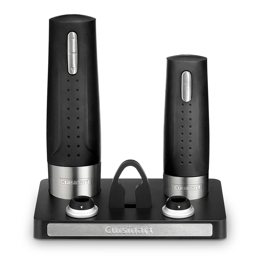 O Wine Center Cuisinart inclui um abridor de vinho elétrico e um preservador de vinho à vácuo, em uma bela base de carregamento. Todos apresentam elegantes detalhes em inox escovado. A unidade também vem com duas rolhas de vinho e um cortador de lacres.