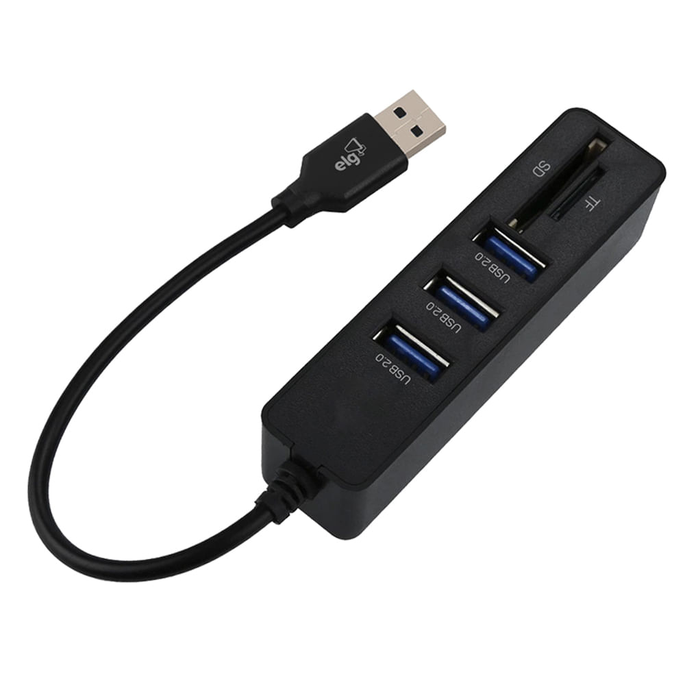 Adaptador Hub USB-A 2.0, 5 em 1 com Leitor SD/TF, Transferência 480Mbps, Preto, HUB51SD-V2, ELG