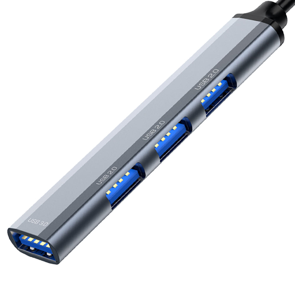 Adaptador Hub USB-C 3.0 4 em 1, 1x USB 3.0, 3x USB 2.0, Transferência 5Gbps, Corpo em Alumínio, Cinza, HUB41A-V2, ELG