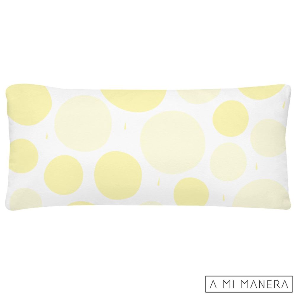 Capa removível, estampa em ambos os lados, enchimento de fibra siliconada e fechamento com zíper invisível.