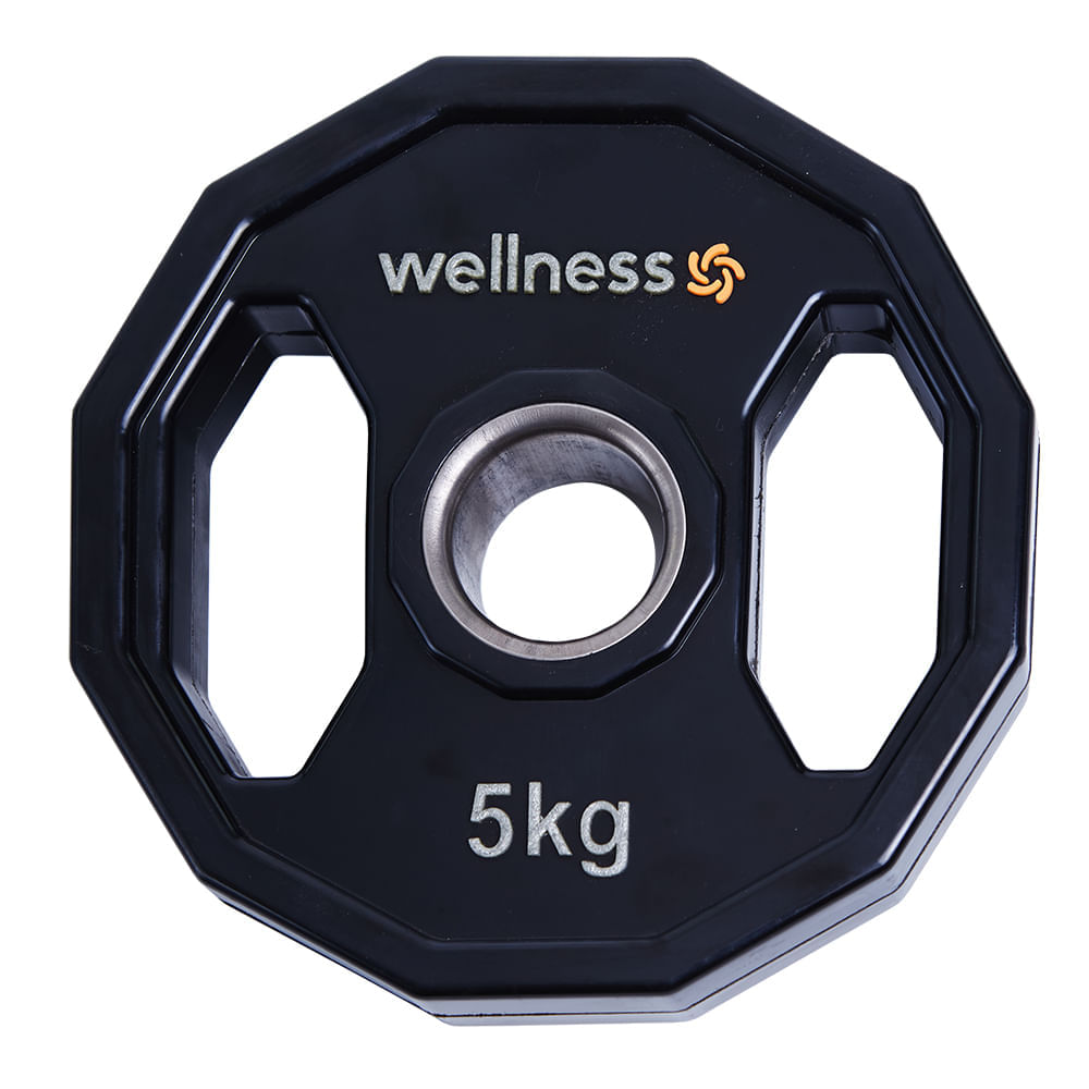 Itens inclusos: 01 Anilha Olímpica Poliuretano 12 Faces De 5,00 Kg Wellness WK019 WK019