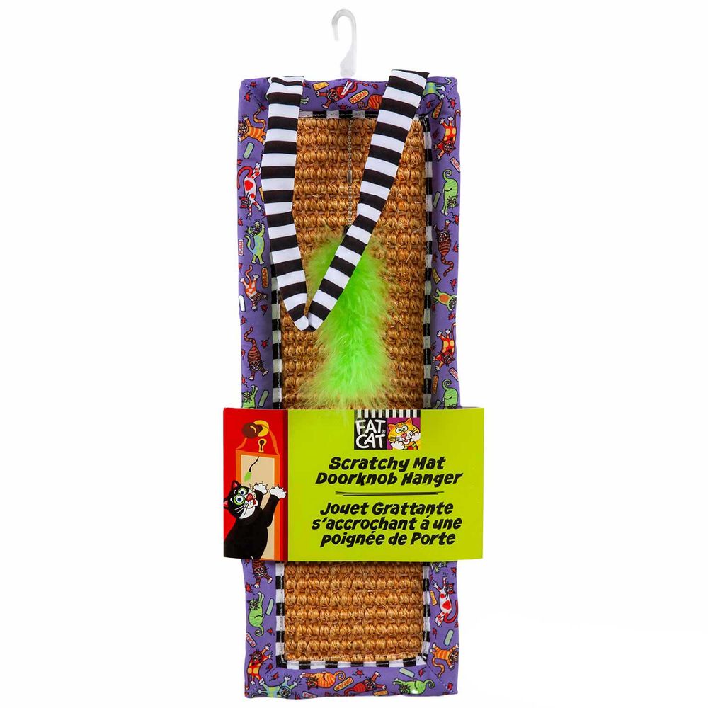 O Brinquedo Arranhador Fatcat Scratchy Mat Doork nob Hanger é próprio para ser colocado na porta, além de proporcionar entretenimento e diversão para seu gato contribui para deixá-lo com as unhas aparadas e as patinhas saudáveis. O catnip orgânico deixa o brinquedo mais atrativo e seu pet mais disposto.
