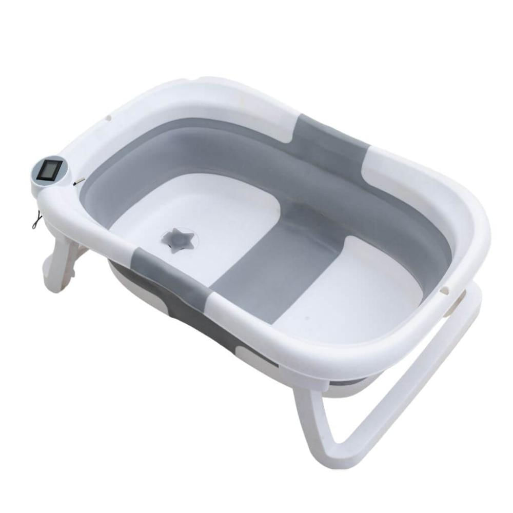 Banheira de Bebê Dobrável Portátil até 35 Litros com Suporte e Almofada de Banho Cinza - Mollie Baby