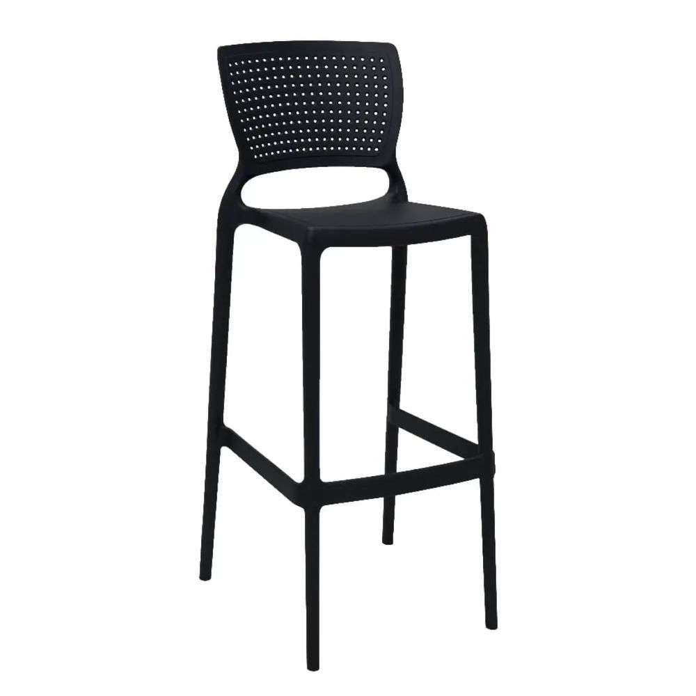 Banqueta Alta Famais Diplomata em Fibra Sintética - Preta