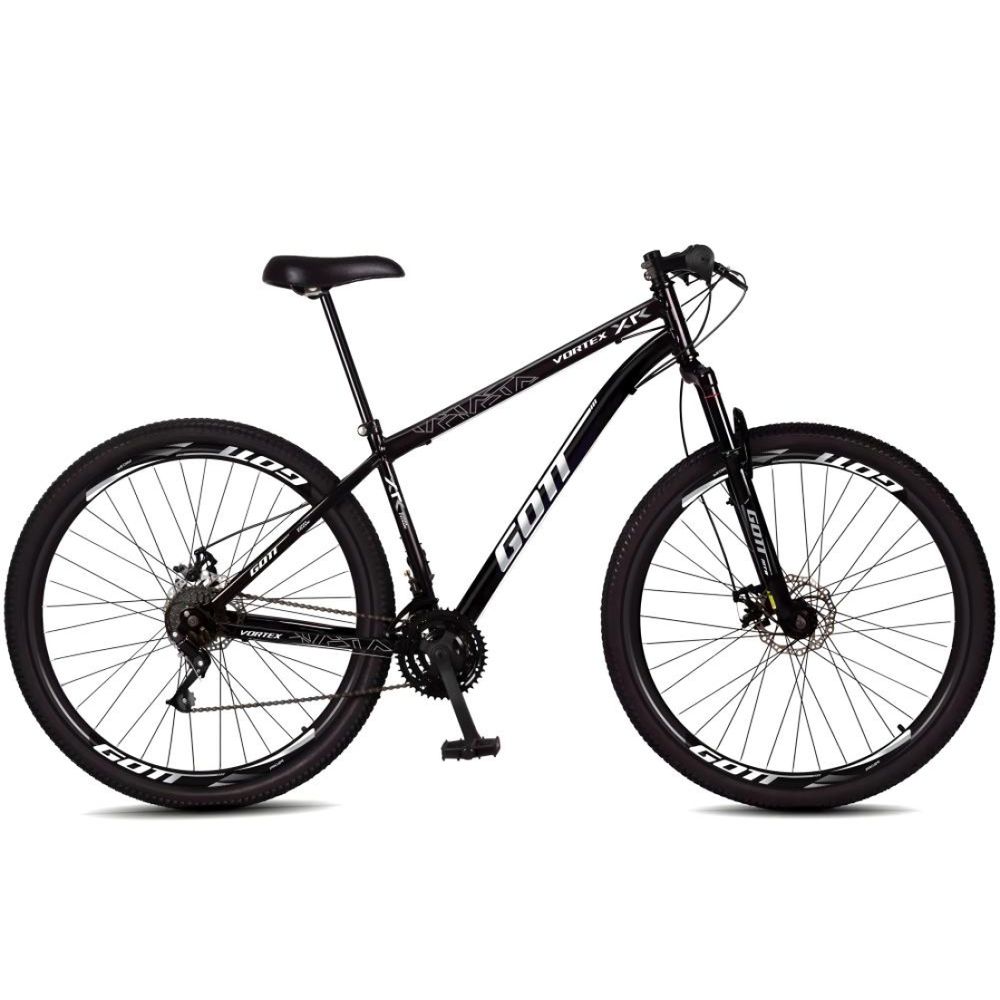 Bicicleta Aro 29 Aço Carbono Gott Vortex 21v Com Suspensão e Freio a Disco - Preto e Branco