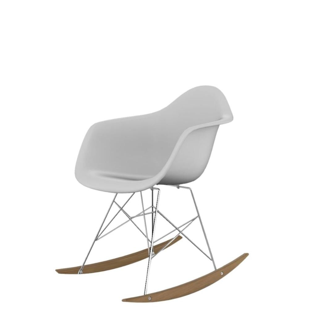 Cadeira De Balanço Eames Com Braço Branca Base Em Metal E Madeira