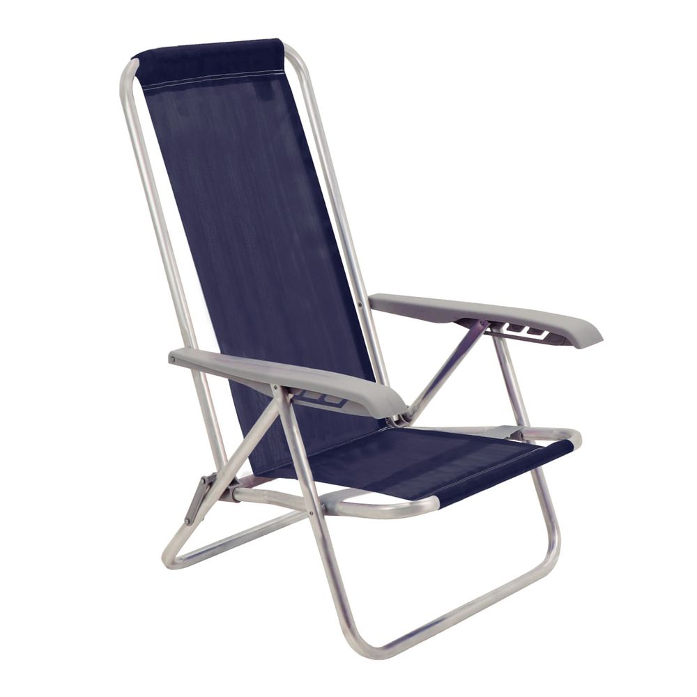 Cadeira de Praia Reclinável Tramontina Bali Baixa em Alumínio Azul Escuro