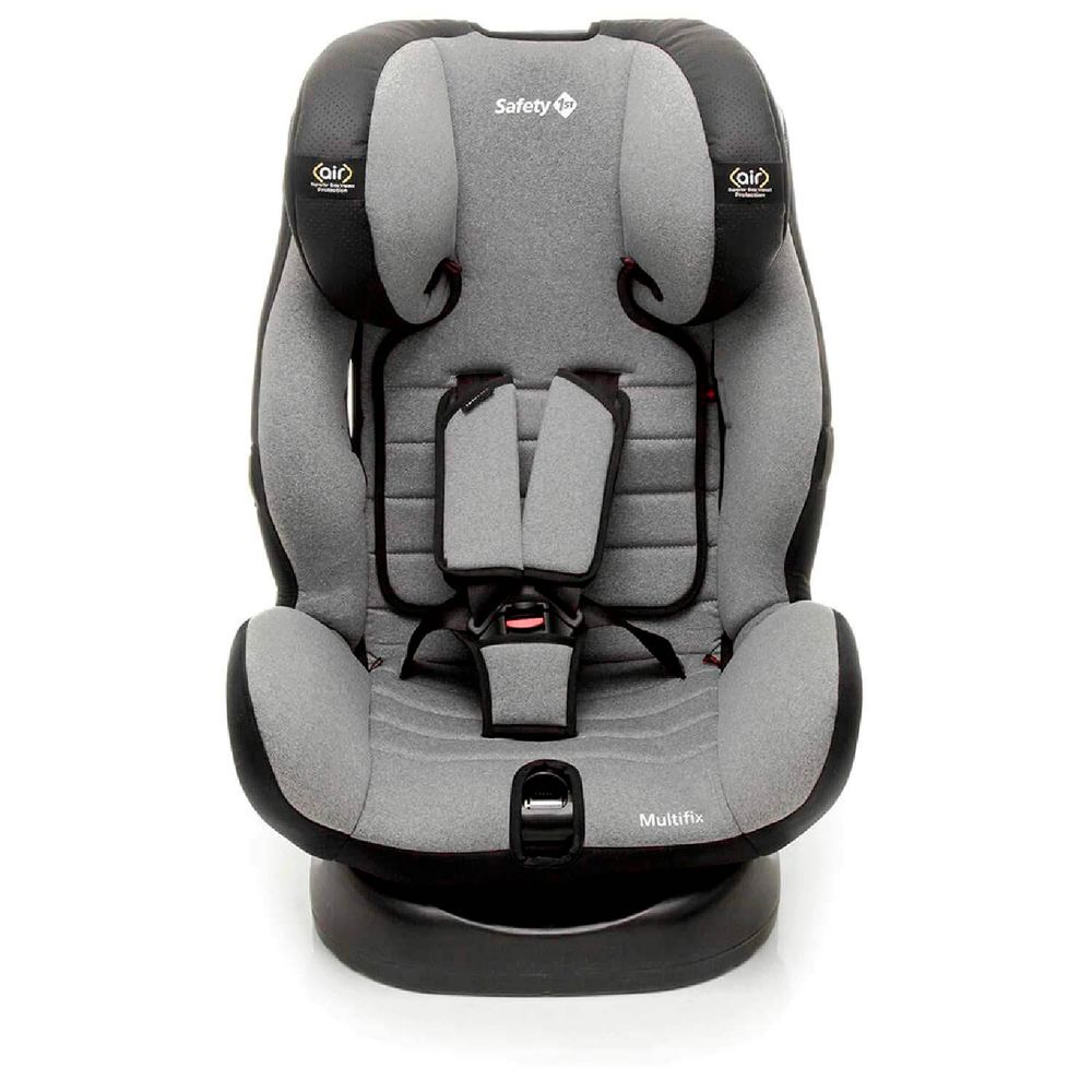 Acompanha todas as fases do crescimento da criança. Segurança extra da instalação fexível, com o cinto do veículo ou com o sistema ISOFIX (a partir do Grupo 1). A cadeirinha Multifix da Safety 1st é uma cadeira multigrupos que acompanha todas as fases do seu flho, dos 0 aos 36 Kg, isto é, do nascimento até aproximadamente os 10 anos de idade. Pode ser instalada nos cintos dos veículos (de frente ou de costas ao movimento) ou no moderno sistema ISOFIX (quando de frente para o movimento), dando flexibilidade para um uso mais fácil em diferentes tipos de automóveis. Possui almofadas redutoras acolchoadas, com espuma extra para os menores, facilidade com os elásticos laterais para apoio das fivelas do cinto no momento de colocar e retirar a criança, 4 posições de inclinação muito confortáveis e o ajuste simultâneo de altura, o apoio de cabeça e os cintos da criança sobem ao mesmo tempo e capa removível e lavável à máquina, muito mais praticidade para os pais no dia a dia. Possui sistema de proteção lateral Air Protect, dando maior segurança aos bebês e crianças. Aprovada pelo Inmetro conforme norma ABNT 14.400 para os grupos 0+,1 , 2 e 3 (0 a 36 kg).