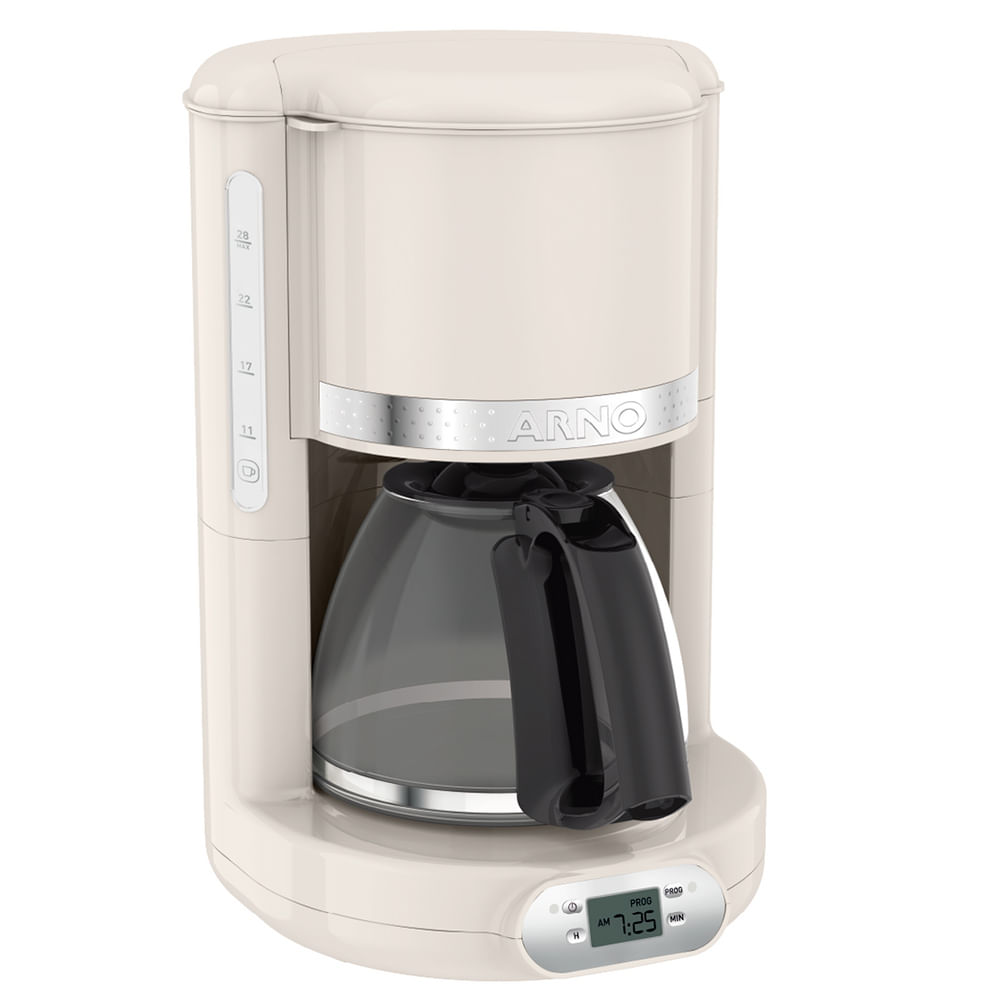 Traga estilo e elegância para sua cozinha através da linha Soleil, que possui design retrô, decorando seu ambiente. A Cafeteira Arno Soleil é recomendada para aqueles que desejam maior conveniência e praticidade em seu dia a dia, aliado a segurança. Possui capacidade de 1,25L, visor lateral que facilita o enchimento do reservatório, juntamente com um porta-filtro giratório, que garante um acesso perfeito. Além disso, possui sistema corta pingos, que permite que você sirva uma xícara de café a qualquer momento durante o ciclo de preparação sem medo de pingar. Acompanha função de desligamento automático, após um ciclo de manutenção quente de 30 minutos, para total tranquilidade e segurança. Com Arno Soleil, tenha estilo também na sua cozinha!