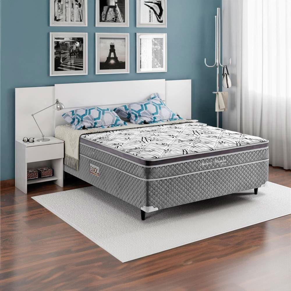 Cama Box Conjugada Casal Herval Nature Bambu com Pillow Inn e Molas Bonnel 56x138x188cm - Preta e Cinza
