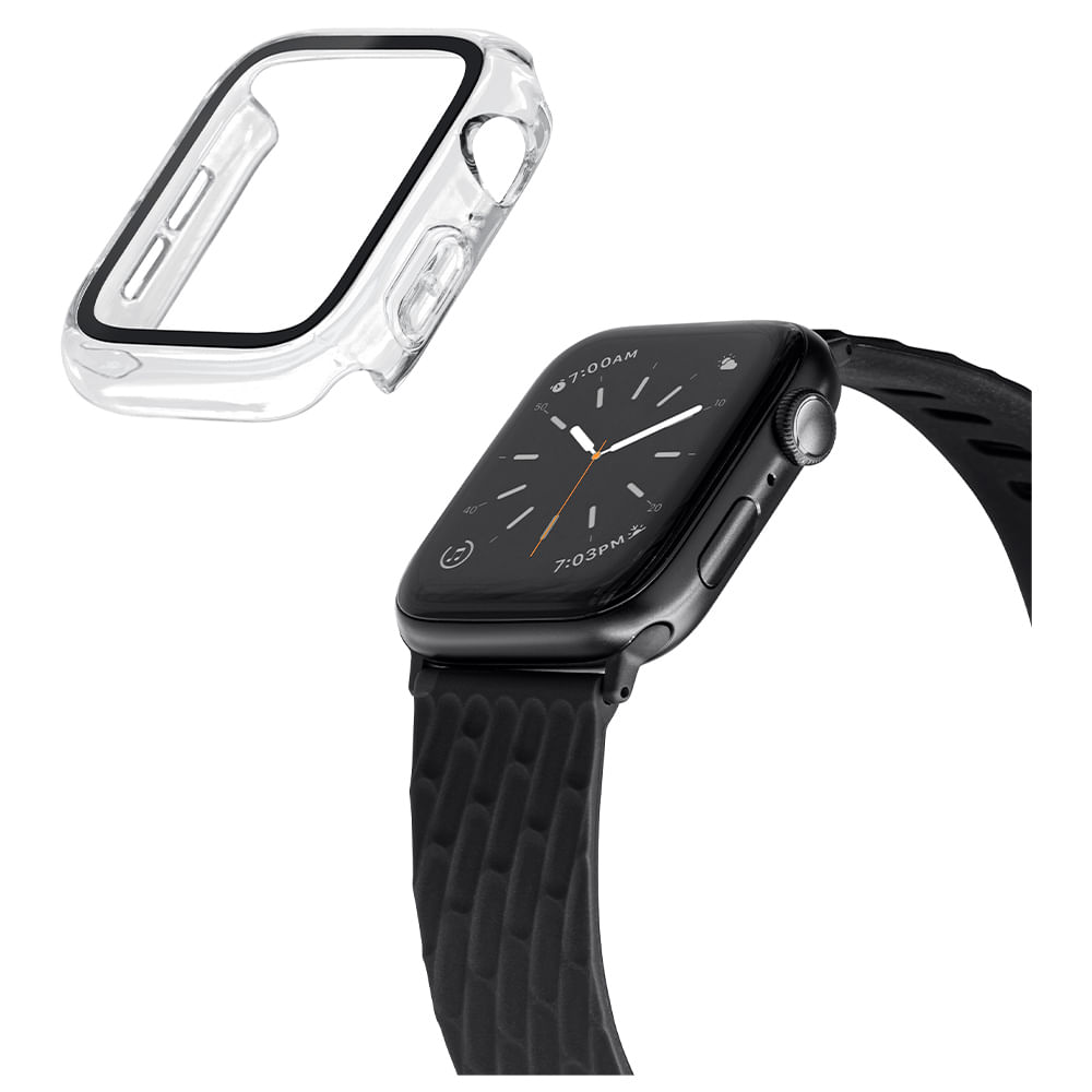 Cobre completamente o mostrador do relógio Apple e ao longo da lateral para que tudo fique protegido.