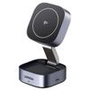 Nosso suporte de carregador 2 em 1 foi projetado por especialistas para entusiastas de tecnologia, oferecendo rápidos 15 W para seu smartphone e suaves 5 W para fones de ouvido sem fio, garantindo que seus dois gadgets carreguem rapidamente juntos.