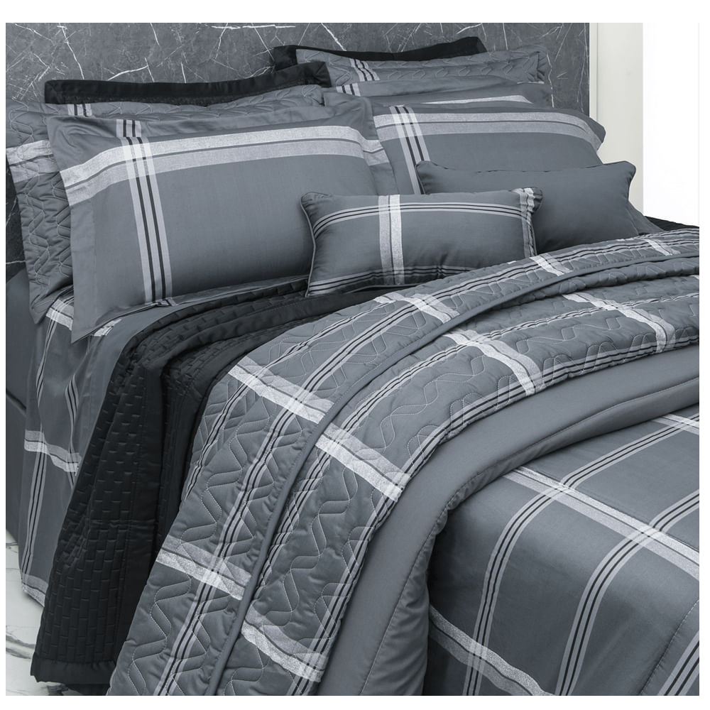 Cobre Leito Casal Satinée Square Prata 300 Fios - Kacyumara