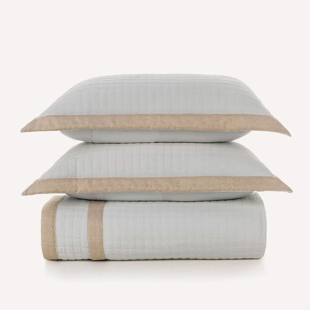 Colcha Queen de Microfibra com 2 Porta Travesseiros Karsten Amaro Linho