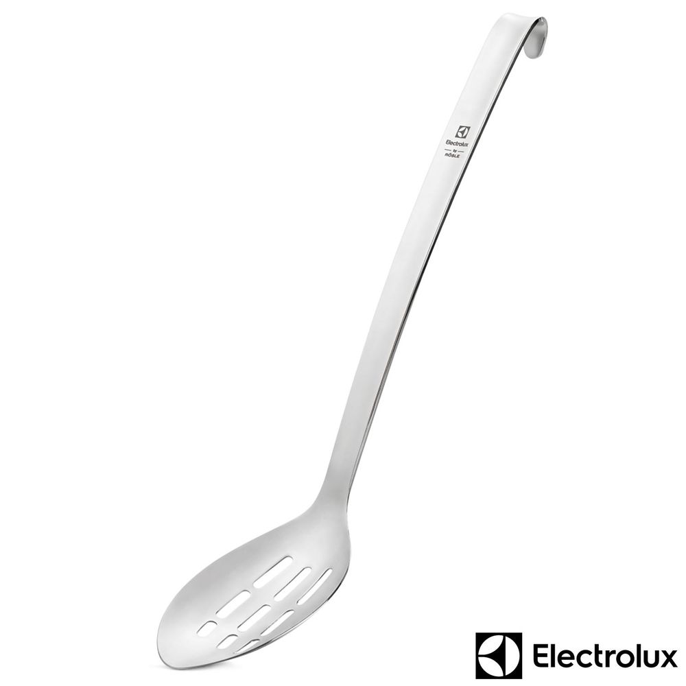 Para servir e dosar qualquer prato. Drena líquidos através das perfurações na base da colher.