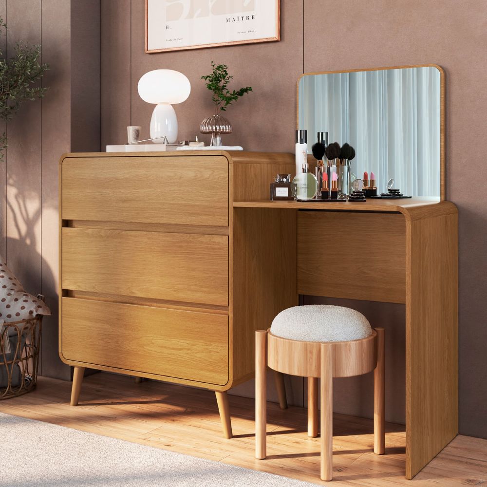 Cômoda Penteadeira 3 Gavetas Curve Carvalho Xingu Completa Móveis