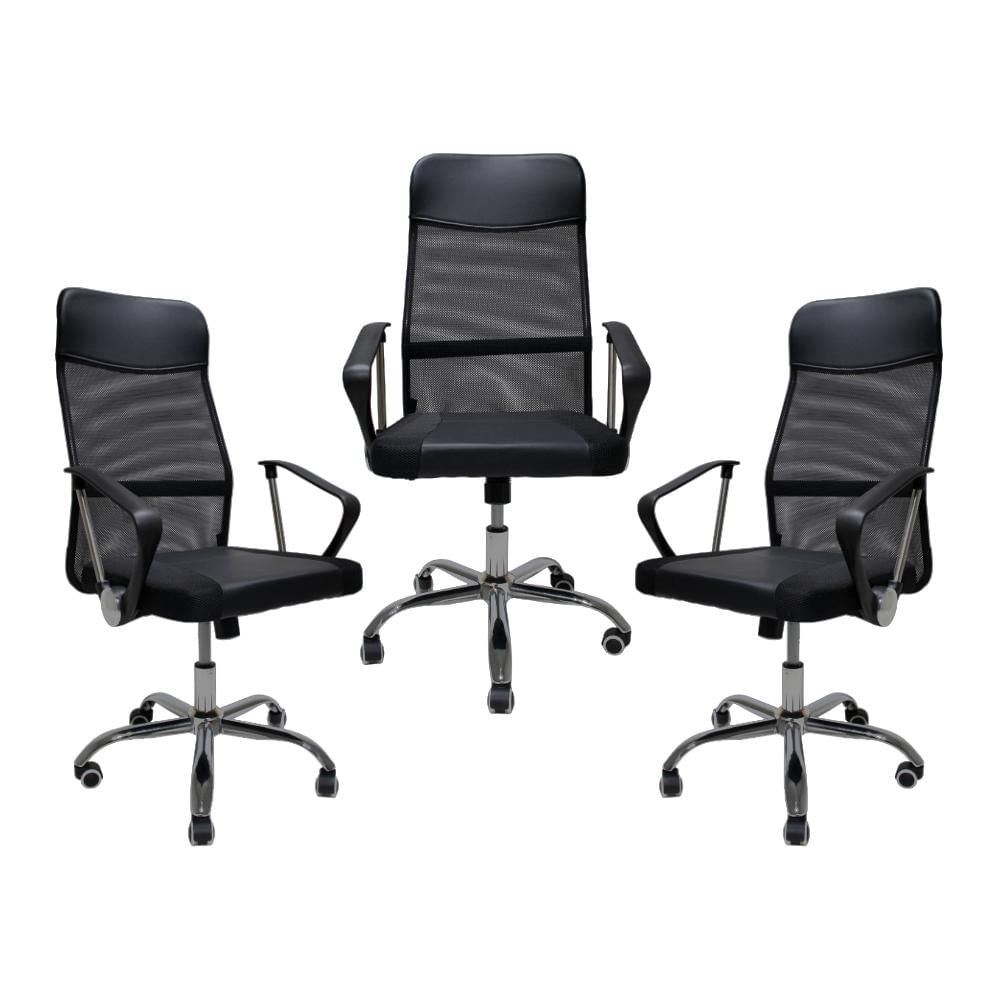 Cadeira para Escritório Presidente Giratória Ergonômica New Opus Roal Preto Encosto em Tela