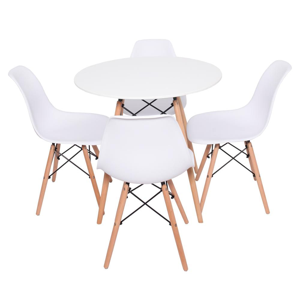 Conjunto 4 Cadeiras De Jantar Cozinha Charles Eames Eiffel Com Mesa Redonda De Jantar 70cm Preto