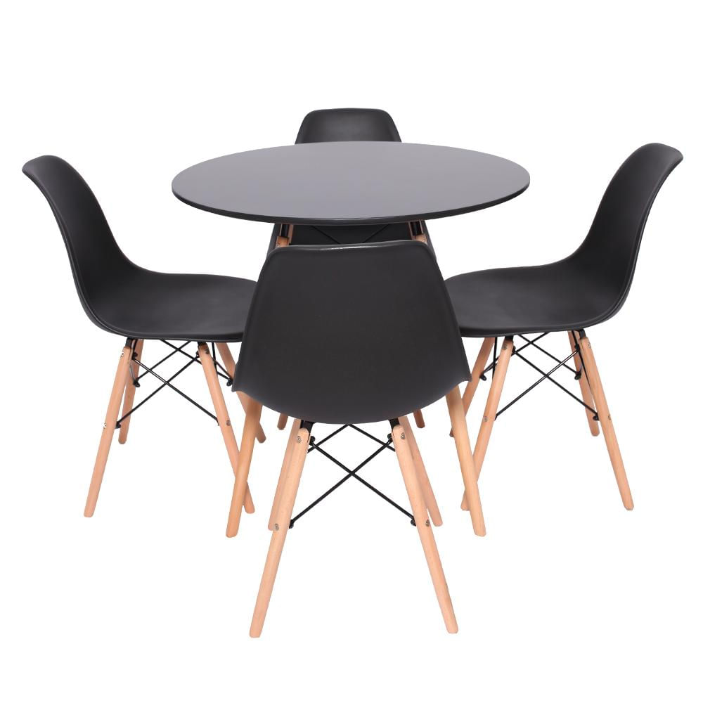 Conjunto 4 Cadeiras De Jantar Cozinha Charles Eames Eiffel Com Mesa Redonda De Jantar 70cm Preto
