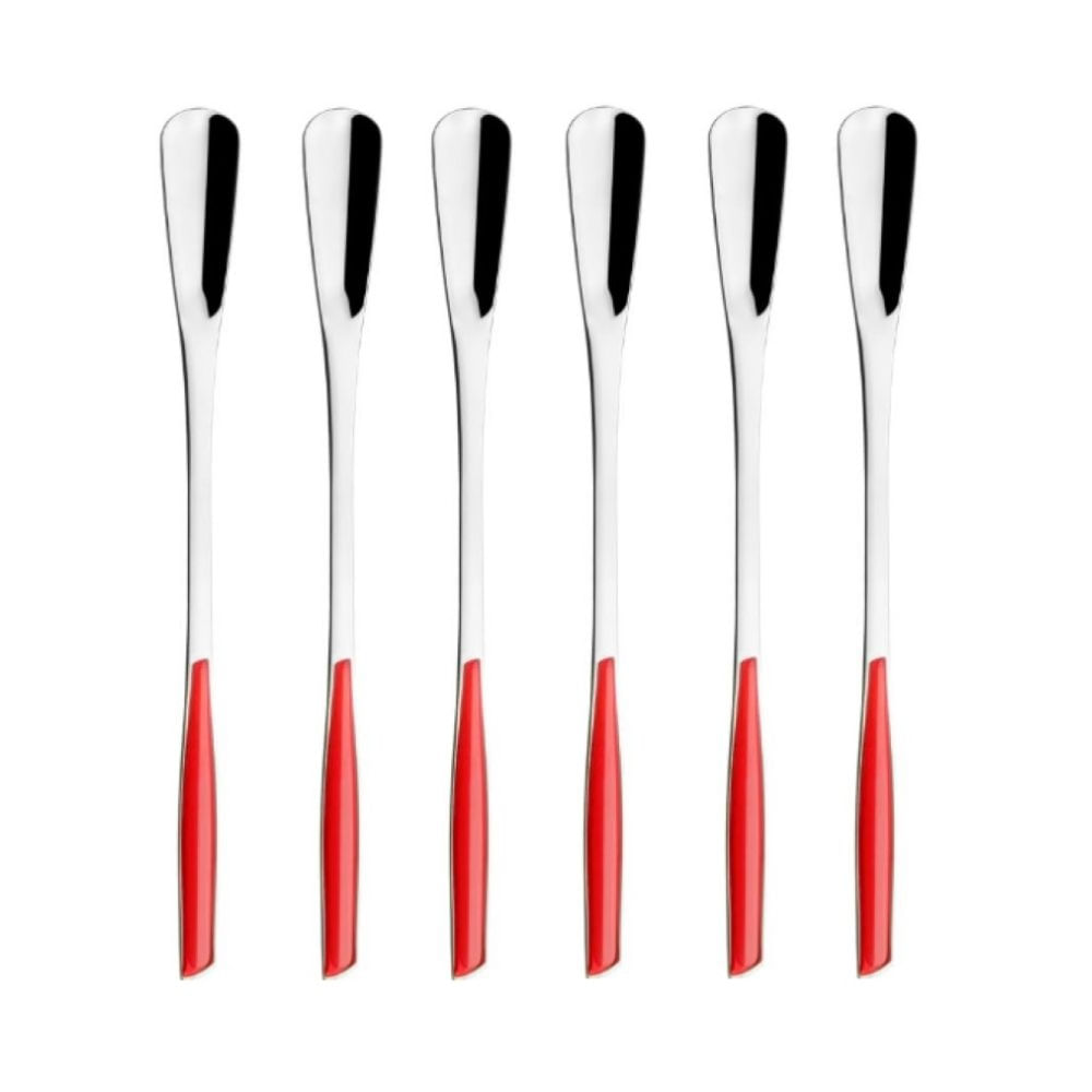 CONJUNTO 6 COLHERES BUGATTI GLAMOUR LONGA PARA DRINKS VERMELHA GL3U02119
