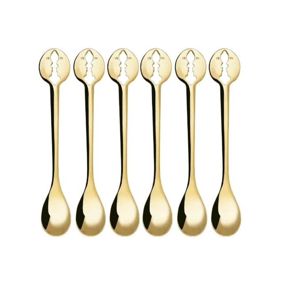CONJUNTO BUGATTI 6 COLHERES DE CAFÉ EM AÇO INOX GOLD KISS 437008DR