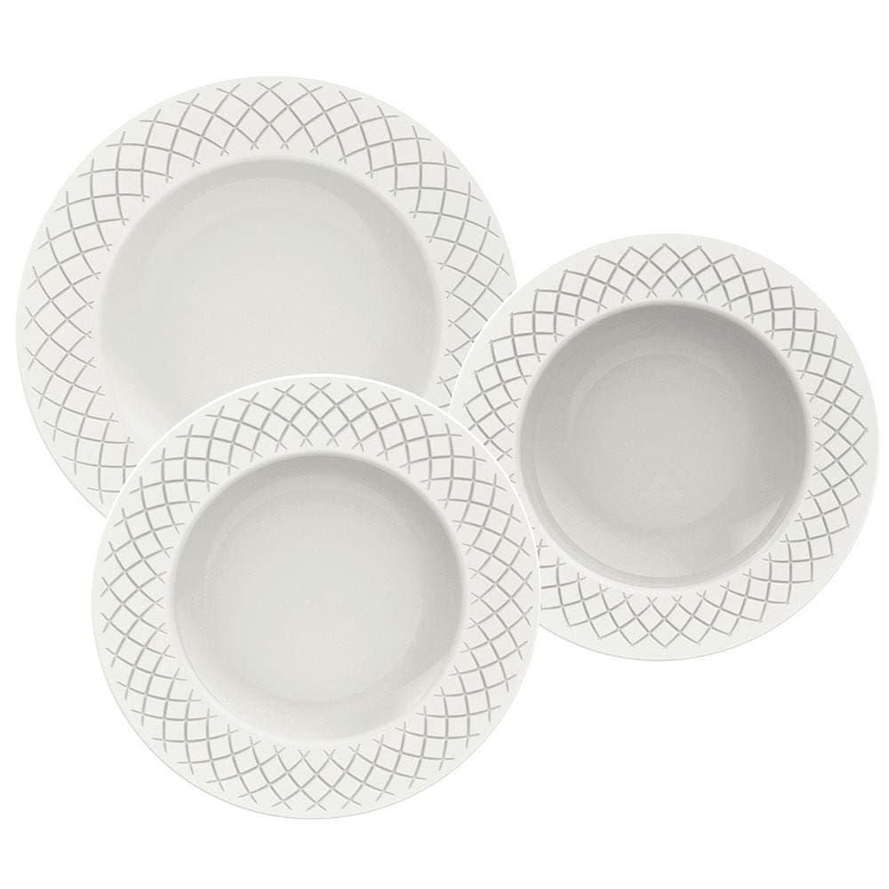 Conjunto com 12 Pratos Tramontina Maria Augusta em Porcelana - Branco