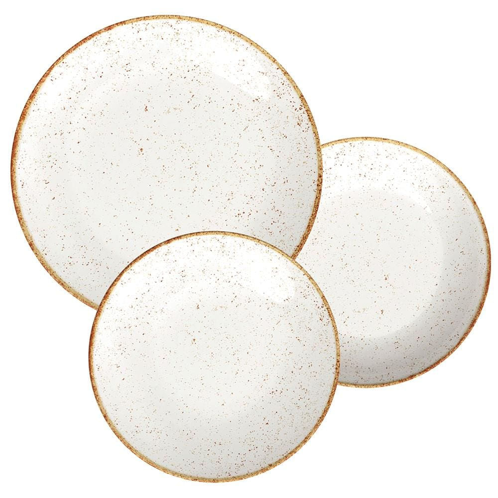 Conjunto com 18 Pratos Tramontina Rústico em Porcelana - Branco/Marrom
