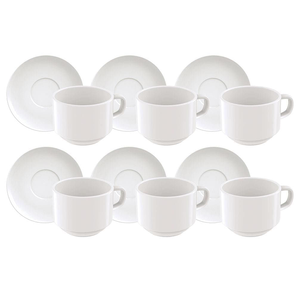 Conjunto com 6 Xícaras e Pires para Capuccino Tramontina Paola em Porcelana Branca - 200 ml