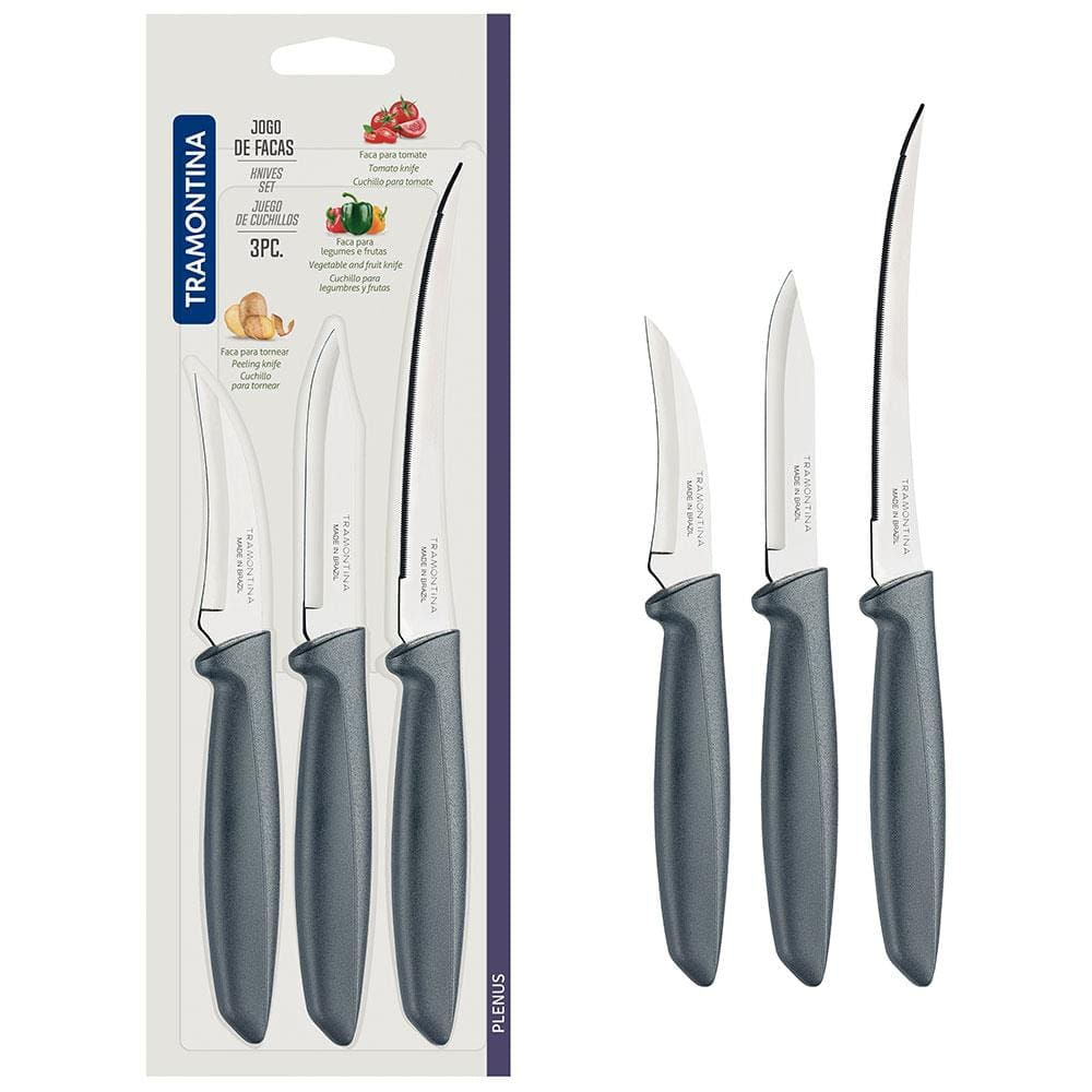Conjunto de Facas e Tábua de Corte Tramontina Plenus em Aço Inoxidável - Cinza - 3 Peças
