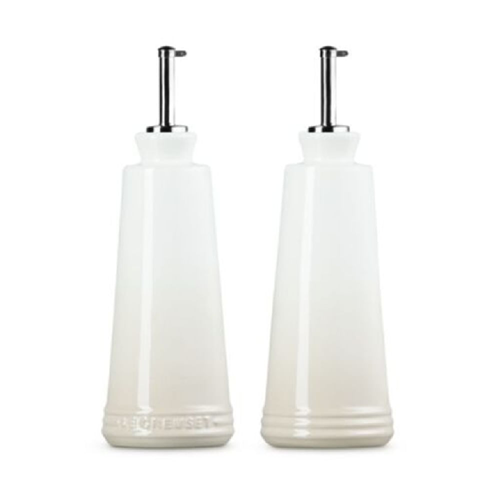 CONJUNTO DE GALHETEIRO LE CREUSET SIGNATURE 300ML AZEITE E VINAGRE EM CERÂMICA MERINGUE 80842307160003