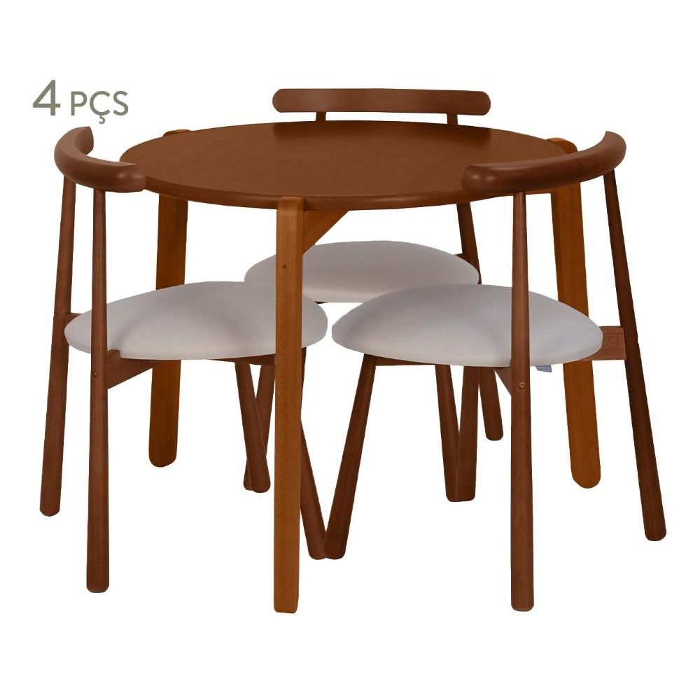 Mesa de Jantar Redonda Viero Província com 4 Cadeiras Estofadas