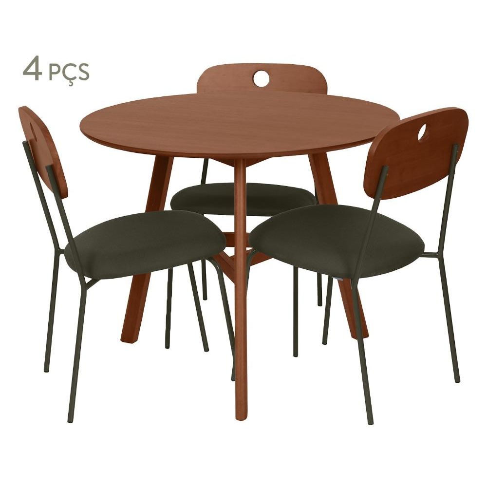 Mesa de Jantar Redonda Viero Província com 4 Cadeiras Estofadas