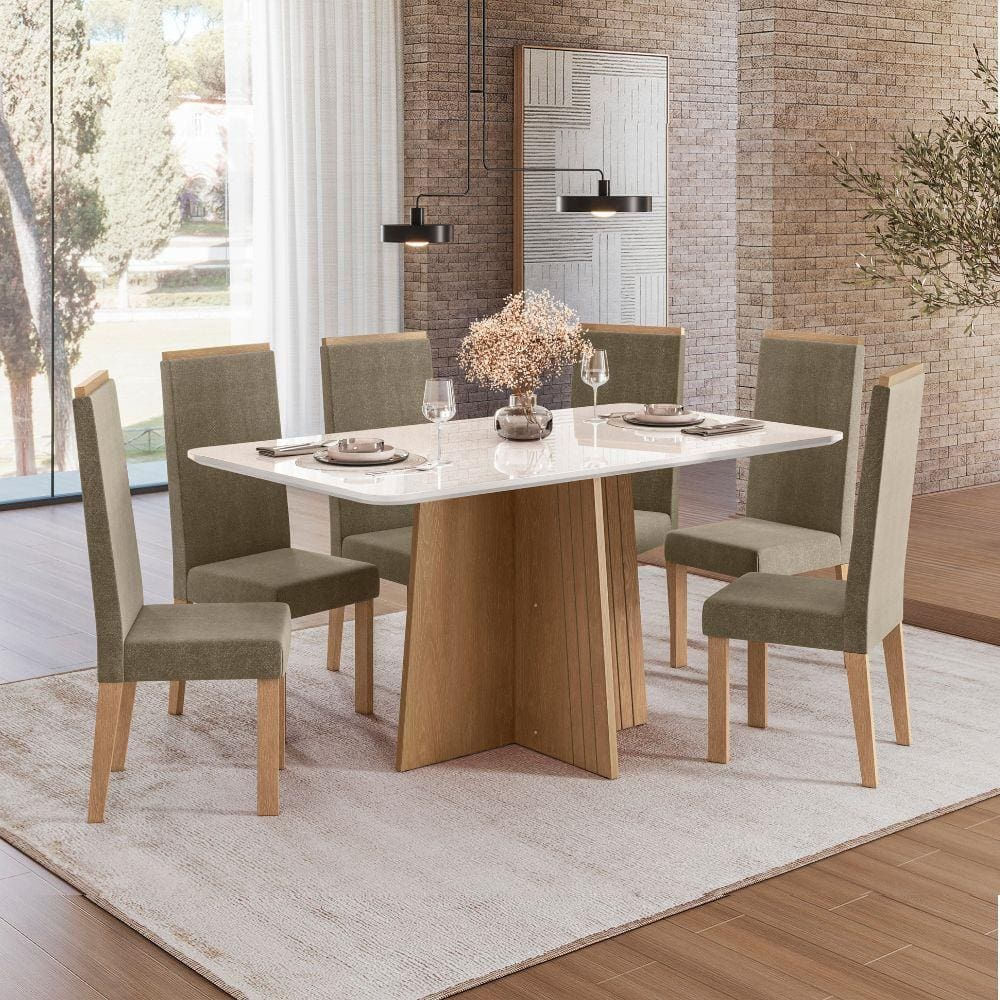 Mesa de Jantar Nesher Lady com 6 Cadeiras – Natural/Off White