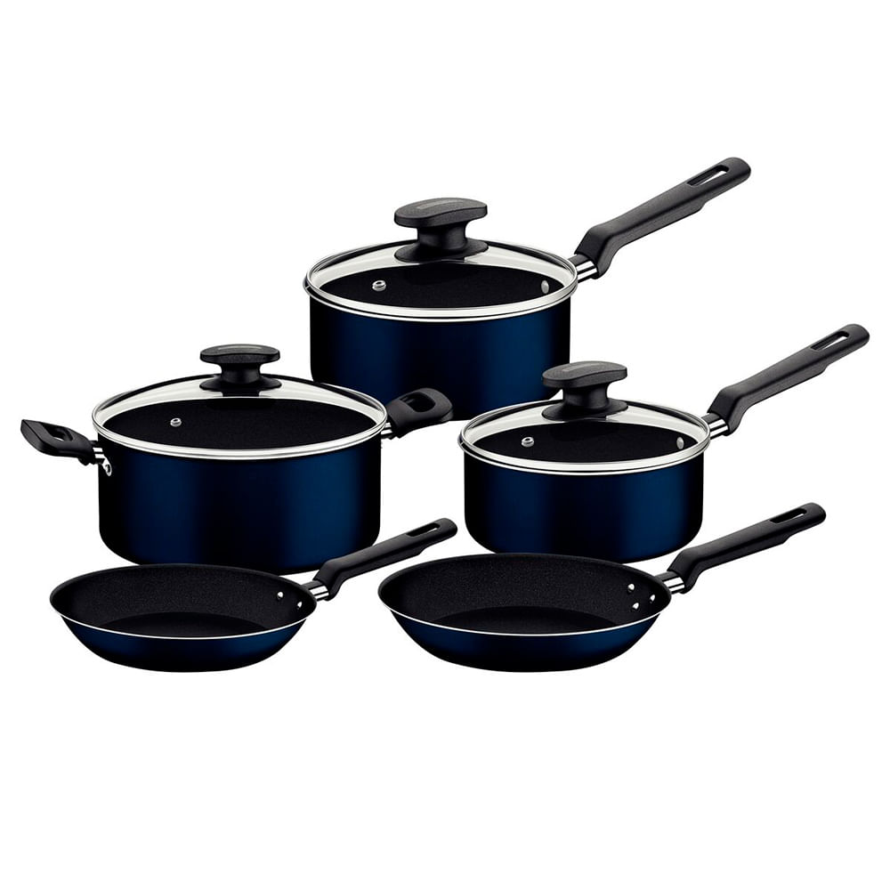 A escolha certa para quem busca um jogo de panelas com ótimo custo-benefício e um design moderno, certamente é o jogo de panelas Tramontina Ravena. Perfeito para deixar seu dia a dia muito mais prático e elegante, é composto por frigideiras, caçarola e panelas. As peças são produzidas em alumínio com revestimento interno e externo em antiaderente Starflon Max, que não gruda, é fácil de limpar, durável e não é prejudicial a saúde. As panelas e a caçarola possuem tampas de vidro temperado com bordas em aço inox e o cabos e alças em baquelite antitérmico garantem segurança e conforto durante o manuseio, pois não aquecem. Um jogo prático, fácil de limpar e que pode ir à máquina de lavar louças. Equipe sua cozinha com a Tramontina e transforme seus momentos na cozinha!