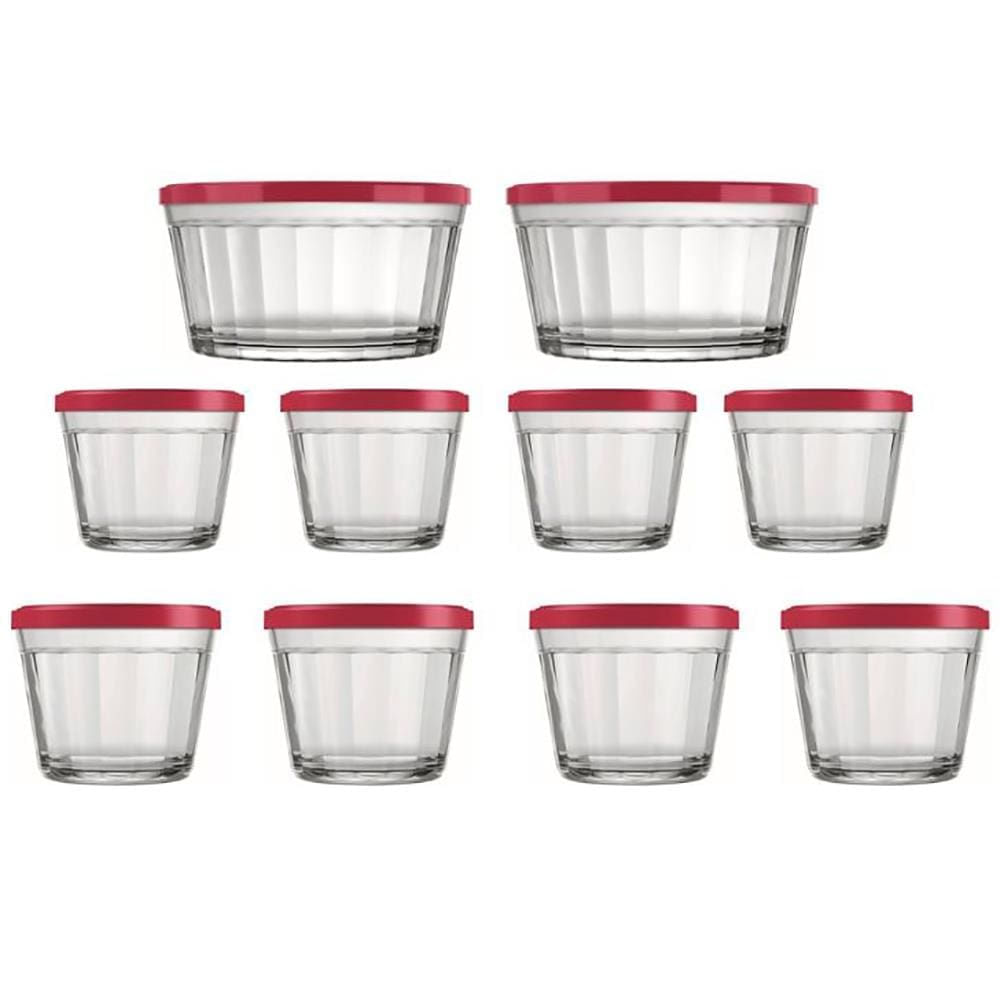 Conjunto de Tigelas Copo Americano em Vidro com Tampa de Plástico 10 Peças