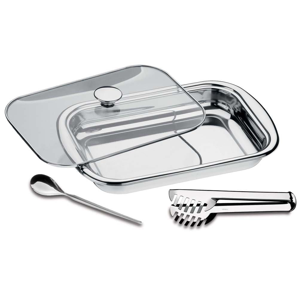 Conjunto de Travessa, Pegador e Colher Tramontina em Inox - 3 Peças