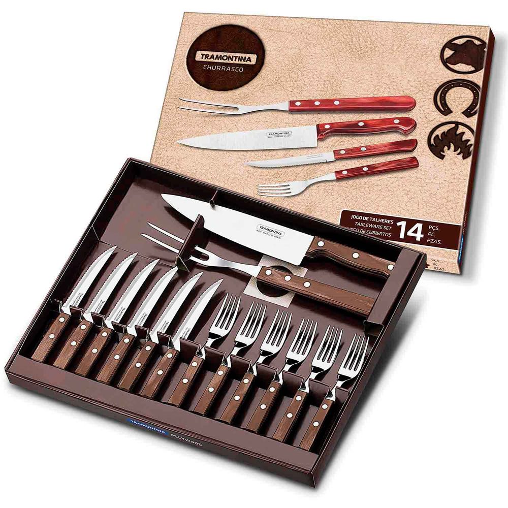 Jogo para Churrasco Tramontina Zurique Aço Inox Fio Serrilhado 12 Peças