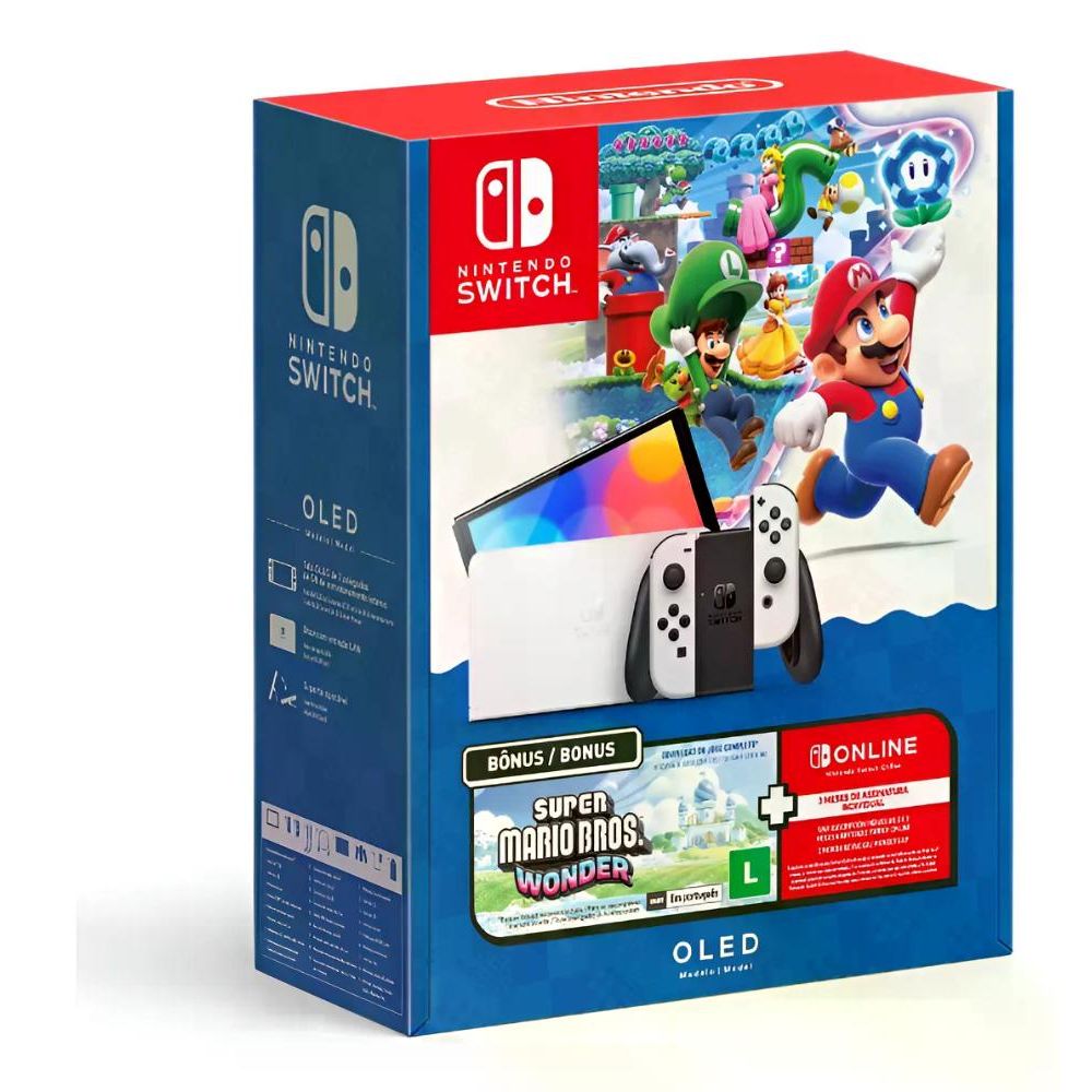 Console Nintendo Switch OLED 64GB – Edição Super Mario Bros Wonder + 12 Meses Nintendo Online O Nintendo Switch OLED 64GB – Edição Super Mario Bros Wonder oferece a experiência completa para jogar em casa ou onde você estiver. Com tela OLED de 7”, cores vibrantes, áudio aprimorado e 64GB internos, este modelo garante jogabilidade fluida e imersiva em qualquer modo: TV, portátil ou mesa. Acompanha o jogo Super Mario Bros Wonder (versão digital) e 12 meses de Nintendo Switch Online, perfeito para jogar com amigos, acessar partidas online e aproveitar conteúdos exclusivos. Destaques do Produto Tela OLED de 7 polegadas com cores intensas 64GB de armazenamento interno Joy-Con Branco incluso Edição Super Mario Bros Wonder Jogo digital Super Mario Bros Wonder 12 meses Nintendo Switch Online Individual Modos: TV, Mesa e Portátil Dock com porta LAN para conexão estável Console bivolt, ideal para uso doméstico e portátil Experiência de Jogo Completa Jogue sozinho ou com amigos passando um Joy-Con Suporte a até 4 jogadores (Joy-Con adicionais vendidos separadamente) Transforme sua forma de jogar: de console de mesa para portátil em segundos Acesso ao modo online com a assinatura inclusa Especificações Técnicas Marca: Nintendo Modelo: Switch OLED 64GB (HBG-S-KAASC) Cor: Branco Armazenamento: 64GB Tela: OLED 7" Resolução: 1920 × 1080 (modo TV) Memória RAM: 4GB Processador: 8 núcleos Conectividade: Wi-Fi | LAN via dock Modos de uso: TV | Mesa | Portátil Suporte ajustável com ângulo amplo Áudio aprimorado nos alto-falantes do console Bateria Íon de lítio Duração aproximada: 4,5 a 9 horas (varia conforme uso) Dimensões e Peso Tamanho: 7,37 × 16,51 × 20,07 cm Peso bruto: 1460 g (com embalagem) Itens Inclusos Console Nintendo Switch OLED 64GB Base / Dock Joy-Con (L) e (R) Branco Alças dos Joy-Con Suporte para Joy-Con Cabo HDMI Adaptador AC Jogo Super Mario Bros Wonder (digital) Assinatura Nintendo Switch Online – 12 meses (individual) Estamos à disposição para esclarecer qualquer dúvida. Atenciosamente, Equipe NegociuN!