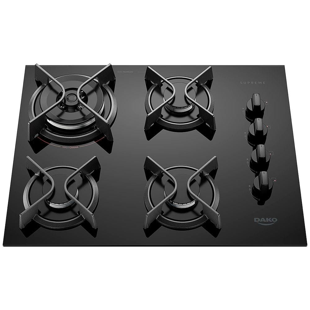 Cooktop a Gás 4 Bocas Dako Supreme com Queimador Tripla Chama Preto – Bivolt