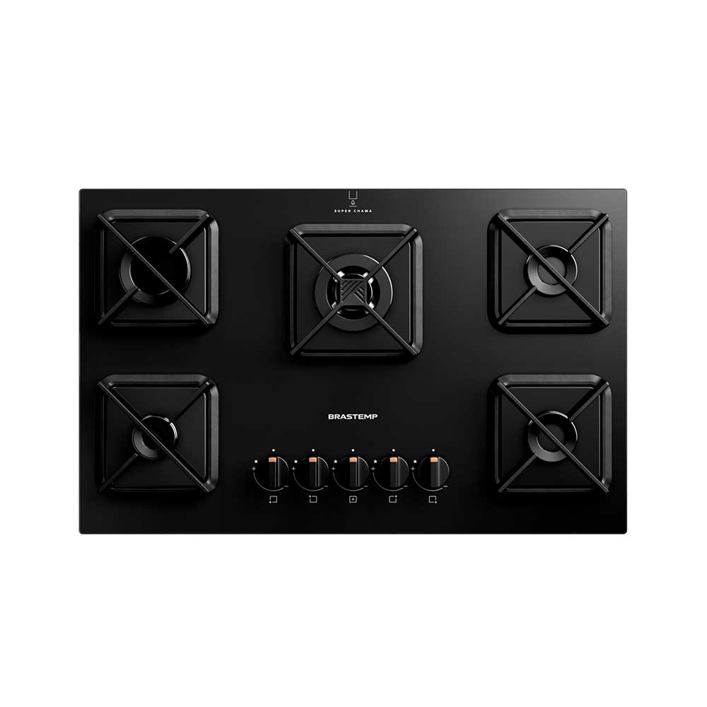 Cooktop a Gás Brastemp Eclipse Collection em Vidro com 05 Bocas, Painel Mecânico Black Inox - BDD86AP