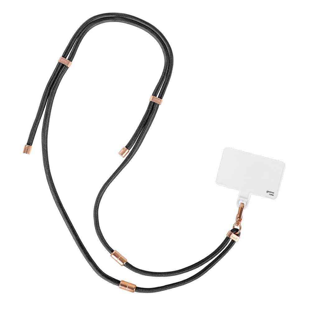 Cordão feito em poliéster de alta resistência, acessórios com acabamento em metal e com ajustadores que permitem encurtá-lo ou transformá-lo em um cordão de pulso, É um acessório que permite que você prenda o celular de duas maneiras, uma ao redor do pescoço, mantendo-o seguro e acessível, ou ao redor do pulso, para ainda mais praticidade de uso do smartphone, sempre com um estilo moderno.