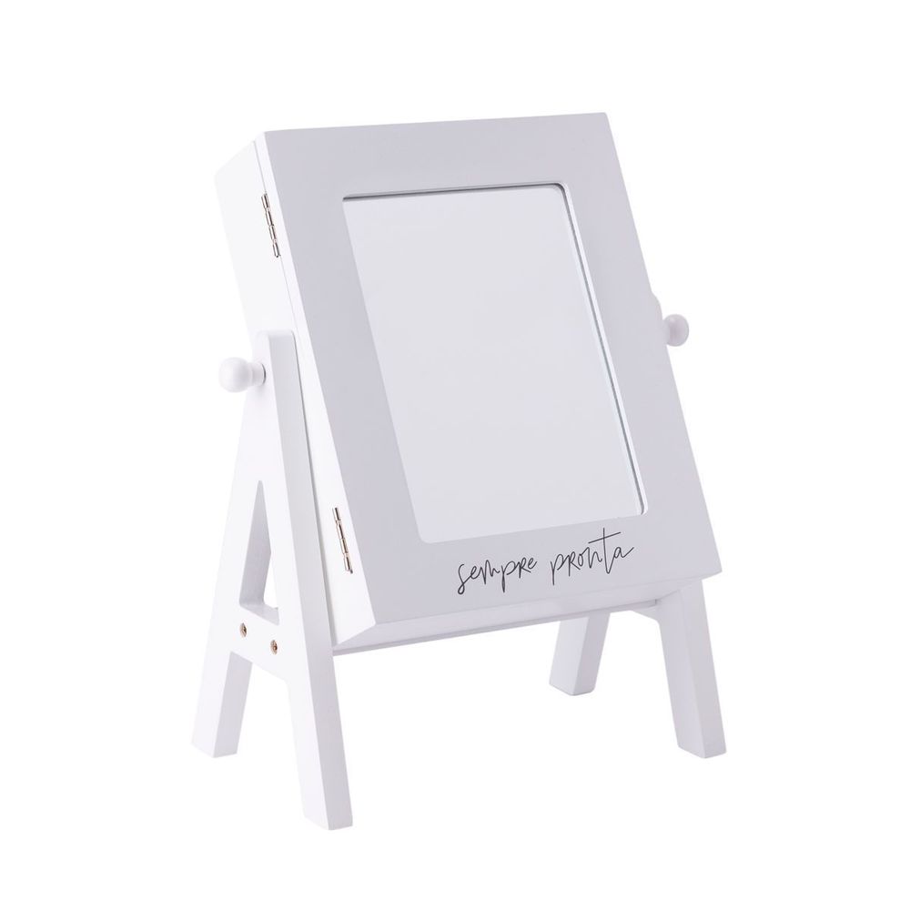 Espelho Funcional Hook Branco Alça Corino 50x50 cm Quadrado