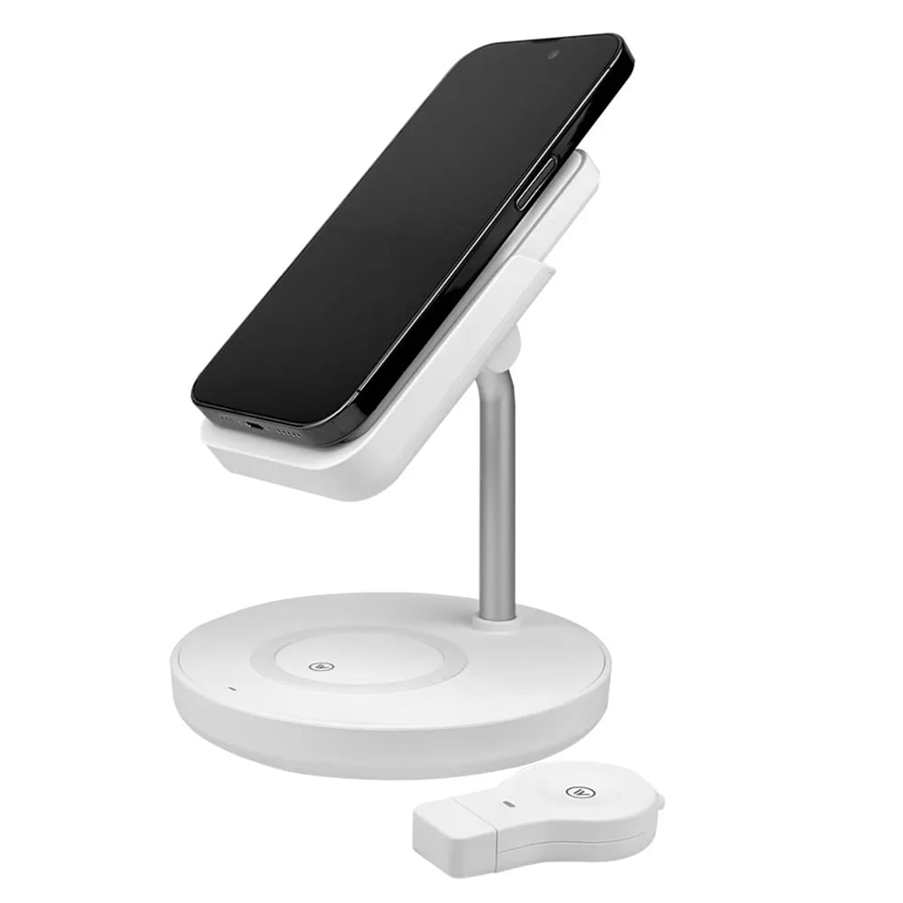 A estação de carregamento 4 em 1 vem acompanhada com uma