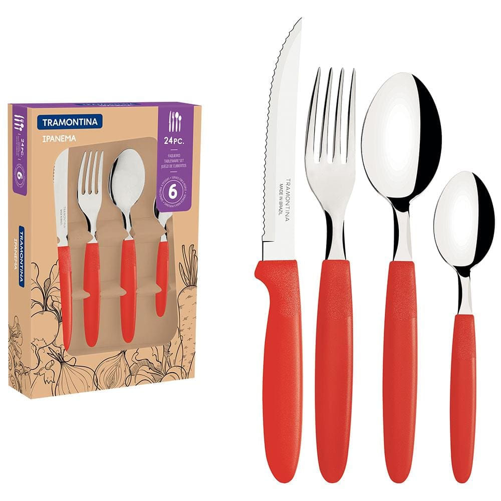 Faqueiro 24 Peças Tramontina Ipanema em Aço Inox - Vermelho