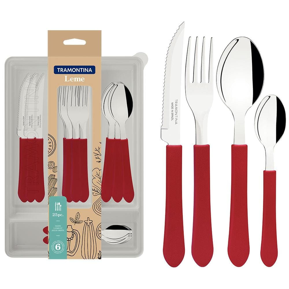 Faqueiro 24 Peças Tramontina Ipanema em Aço Inox - Vermelho