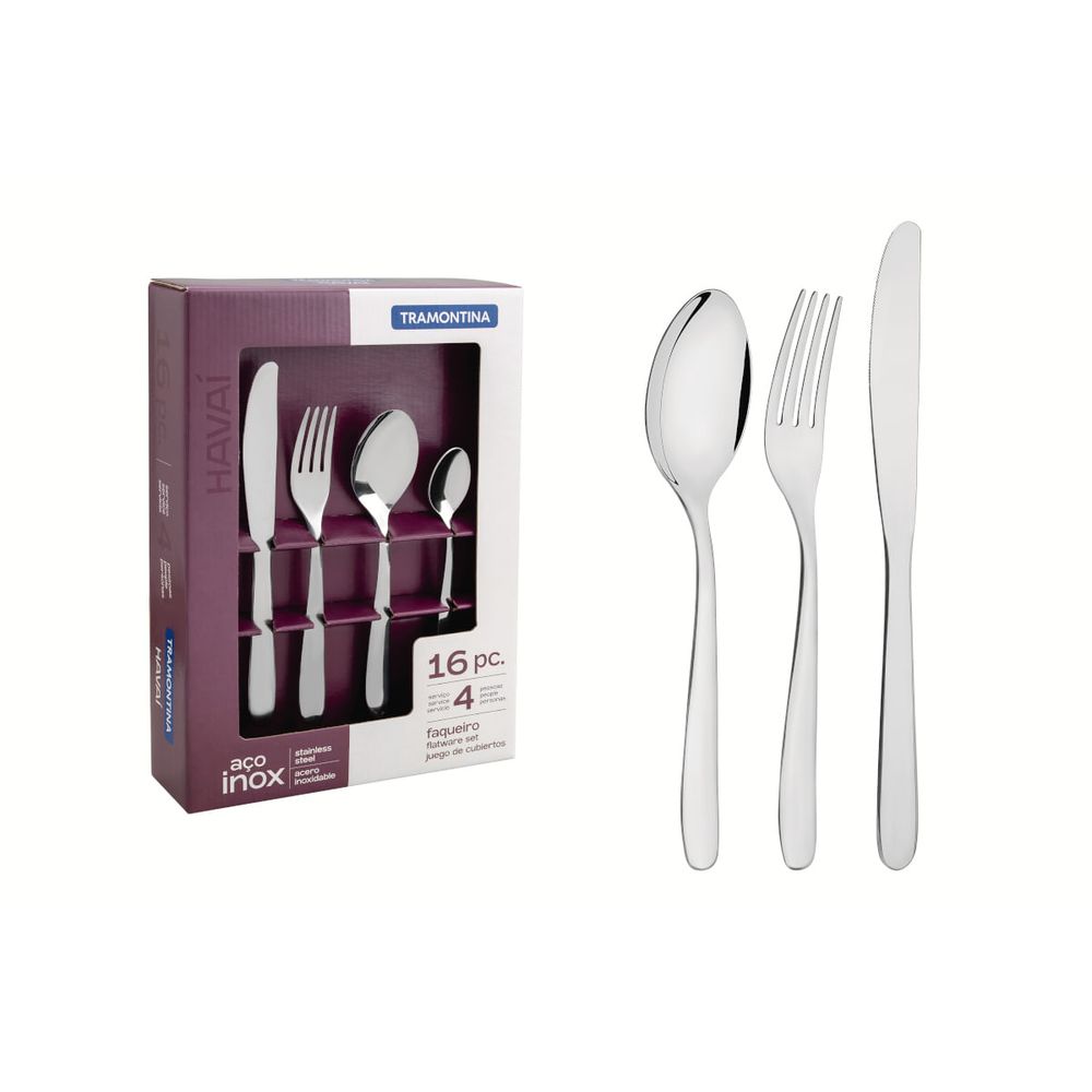 Faqueiro Tramontina Havaí em Aço Inox com Facas de Mesa 16 Peças