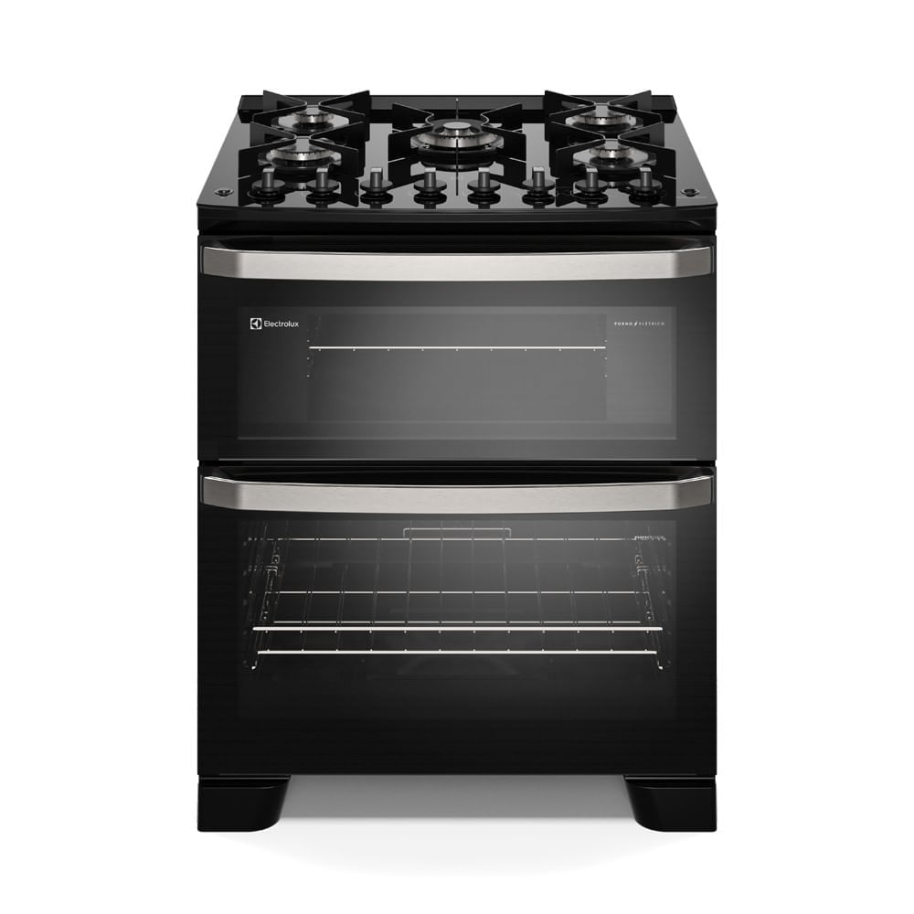 Fogão 5 bocas Electrolux Preto Experience 2 Fornos, Mesa de Vidro e PerfectCook360 (FE5DP)