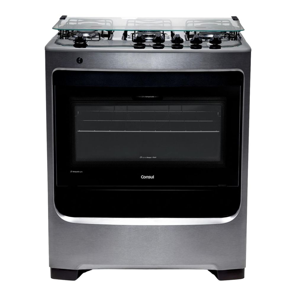 Fogão Consul 6 Bocas Cor Inox com Botões Removíveis e Vidro Interno Vedado - CFS6NAR