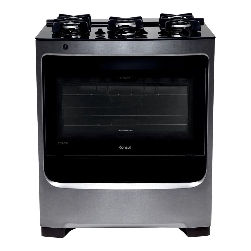 Fogão Consul 5 Bocas Cor Inox com Mesa de Vidro e Grade de Ferro Fundido - CFS5VAR