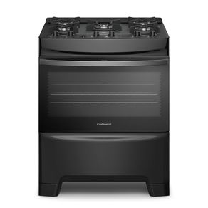 Fogão Continental 5 Bocas FC5GB Preto Mesa de Vidro Forno Eco Turbo Tripla Chama Bivolt